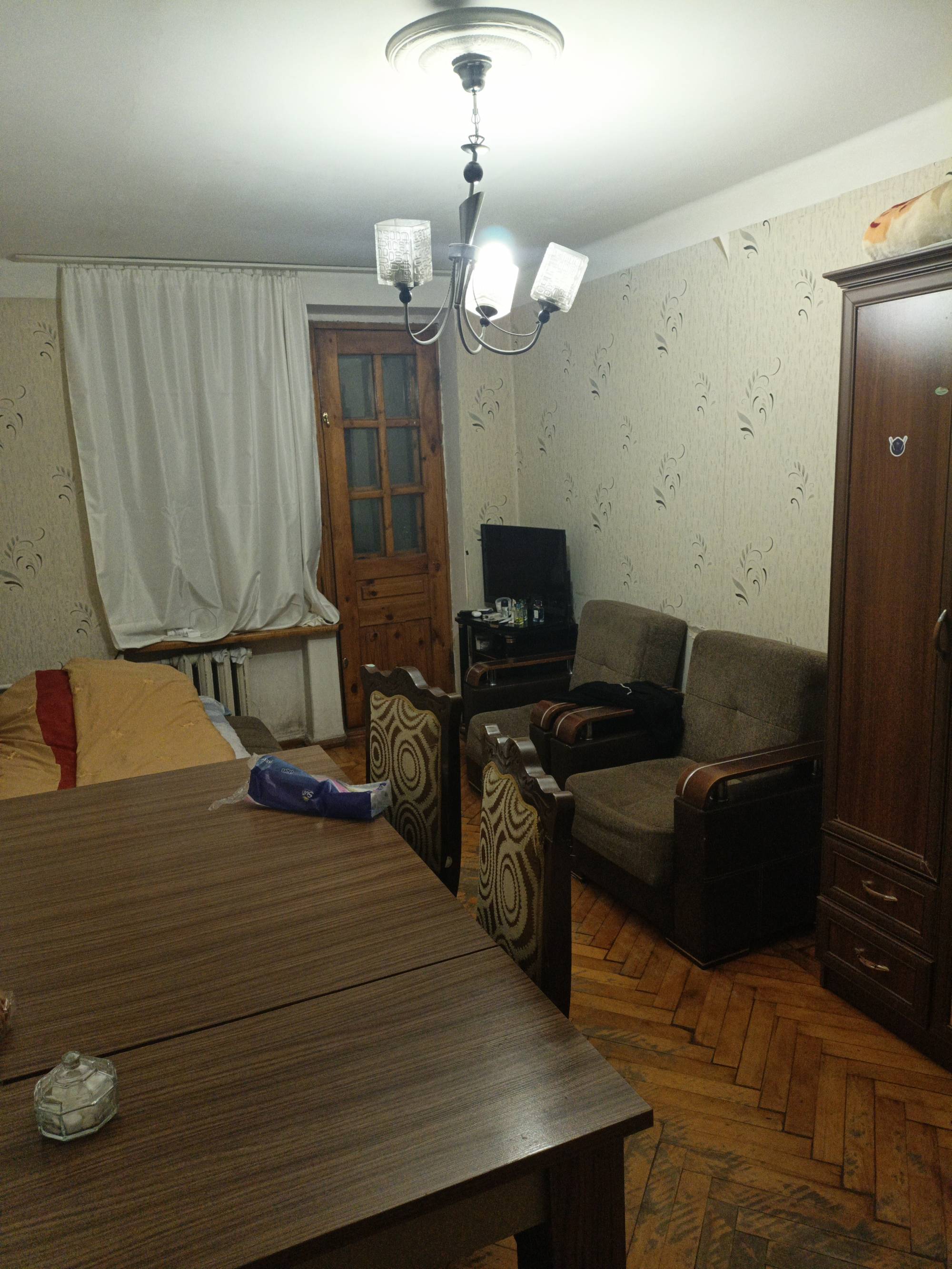 Ev neftçilər metrosunun düz yanında yerləşir. Bir otaqlı mənzildir, köhne bina, orta təmirli. Mərkəzi istilik sistemidir, evdə yaşamaq üçün lazimi bütün avadanlıqlar var, iki açılan kreslo var onları açdıqda çarpayı olur, gələn adamla razılaşma əsasında yeni çarpayıda alına bilər, normal işi gücü olan bəylər müraciət edə bilər. Evdə ümumi iki nəfər qalacayıq.