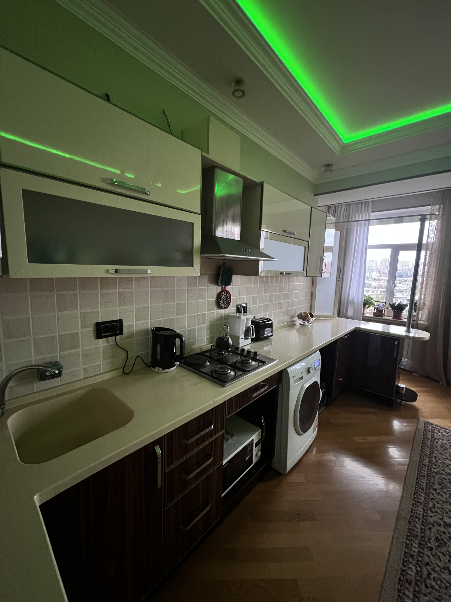 Təklif etdiyim otaqda bir nəfərlik çarpayı və bir nəfərlik divan var. Evin mətbəxi və balkonu genişdir.